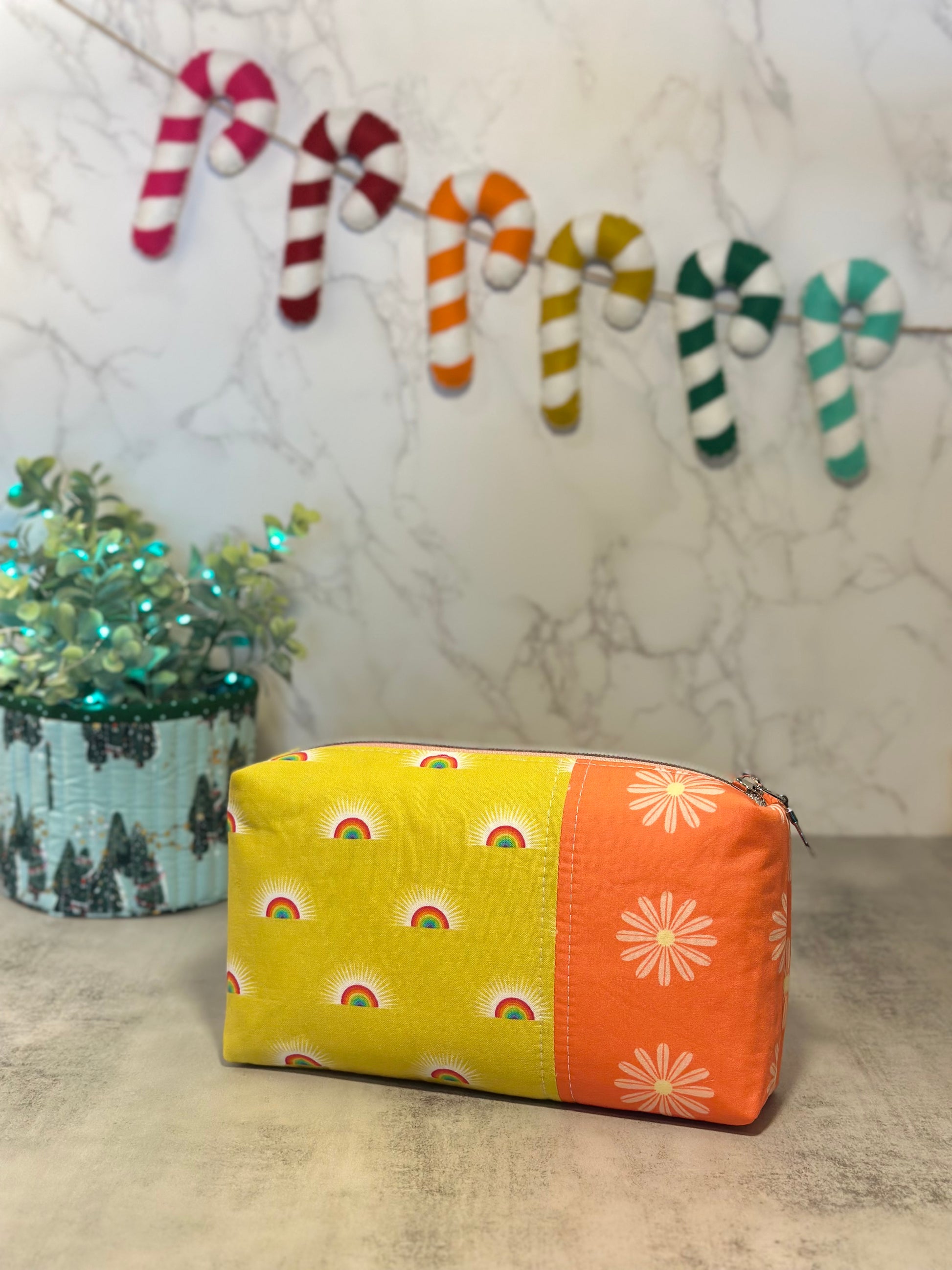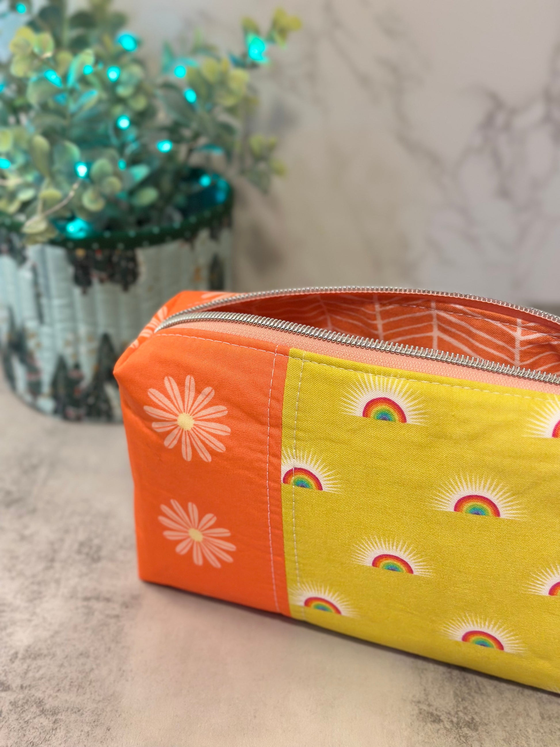 The boxy pouch! A classic! Coordinating interior print. 100% cotton exterior and interior fabrics.